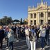Der Morgen des zweiten Tages startete mit einem beeindruckenden und bewegenden Pilgerweg von der Engelsburg über die Via de la Conciliazione, über den Petersplatz in die Peterskirche. Gemeinsam beteten wir, verbunden über die Kopfhörer, vorne weg abwechselnd Pilgerinnen und Pilger, die ein Holzkreuz trugen und die Gruppe leiteten. Das Tragen des Kreuzes löste tiefe Berührung aus. Der Weg führte vom Obelisken auf dem Petersplatz hinein in den Petersdom durch die Heilige Pforte. Angekommen im Petersdom feierte die Reisegruppe einen Gottesdienst. Ein erhabenes Gefühl machte sich breit, in diesem denkwürdigen Dom, gemeinsam eine Messe zu feiern.